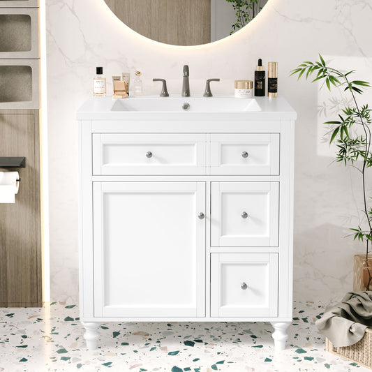 Ceramic Sink Combo, Freestanding Vanity Set With 3 Drawers & Soft Closing Doors