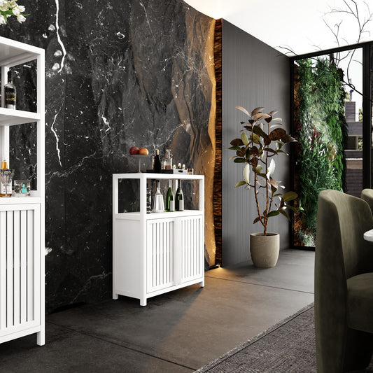 Bamboo Large Capacity Storage Cabinet With Shelves For Bathroom And Living Room - White