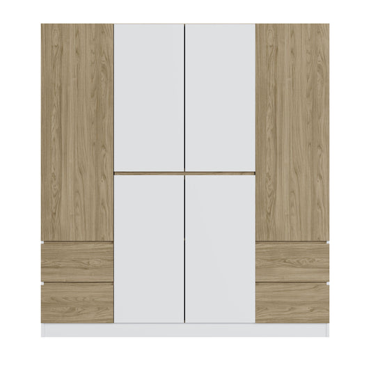 6 Doors Wardrobe Storage For Bedroom, With 4 Drawers - White / Nature