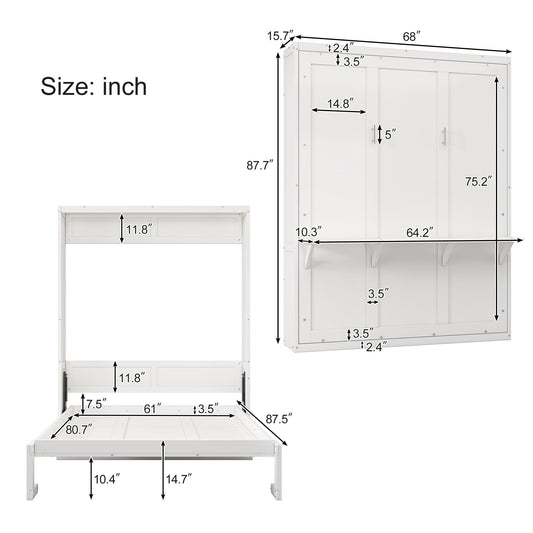 Murphy Bed With Side Cabinet Storage Shelf, Cabinet Bed Folding Wall Bed With Desk Combo Perfect For Guest Room, Study, Office