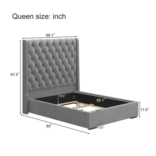 Tall Headboard Upholstered Bed With Handmade Deep Button Tufted, Box Spring Needed