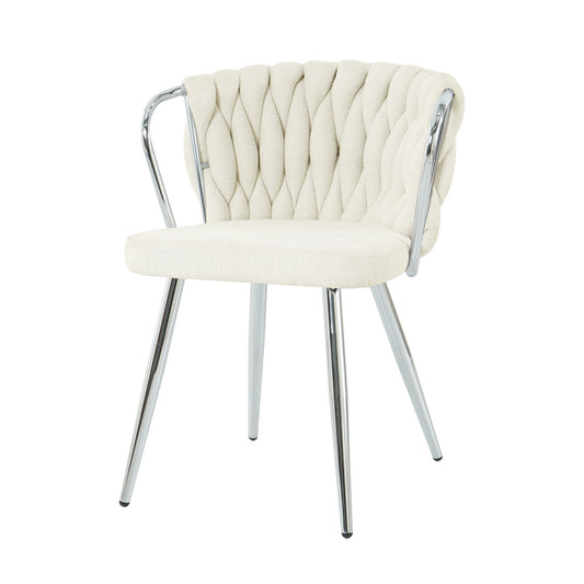 Modern Simple Linen Dining Chair With Plated Metal Legs (Set of 2)