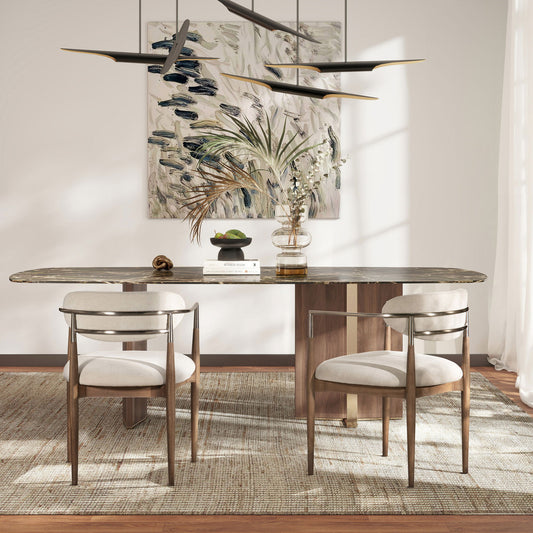 Artemis - Mixed Material Upholstered Dining Arm Chair - Warm White