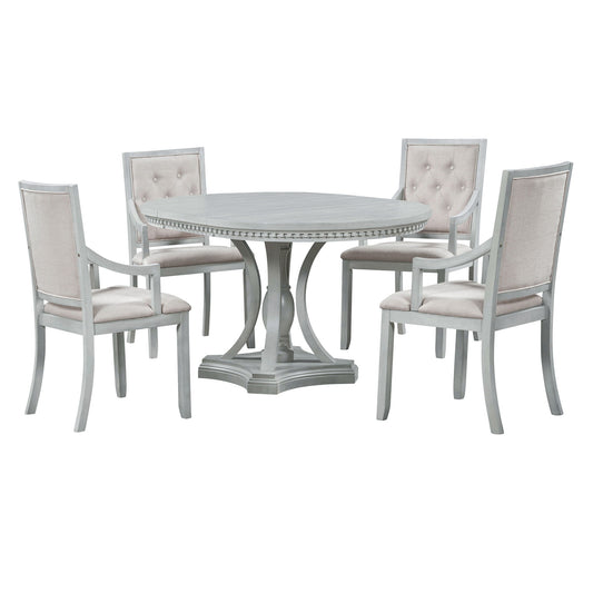 Dining Set Retro Extendable Round Table And Chairs For Kitchen Dining Room