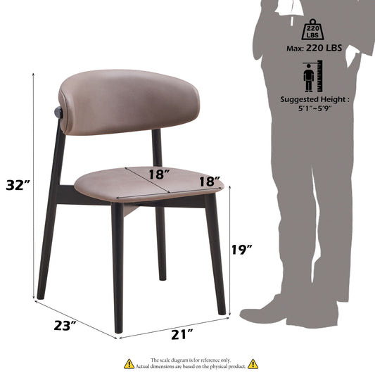 Modern Gray Simple PU Dining Chair Upholstered Chair Family Bedroom Stool Back Dressing, Black Round Table Set, Bentwood Covered With Ash Veneer Chair Back, Chair Metal Legs