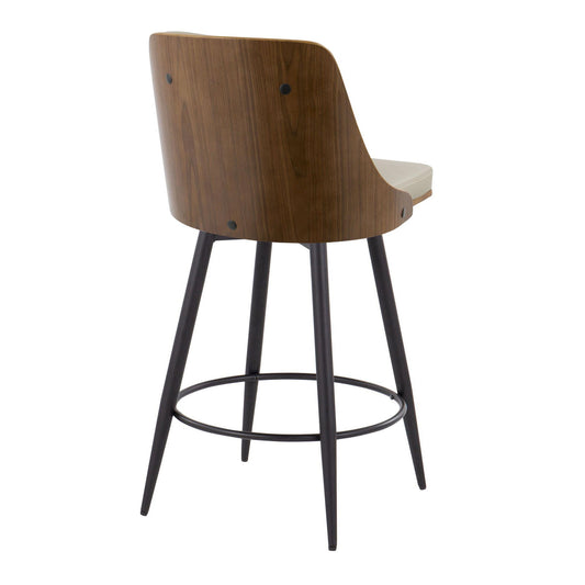 Gianna - Mid-Century Modern Fixed Height Counter Stool With Swivel With Round Footrest (Set of 2) - Black / Walnut / Light Gray