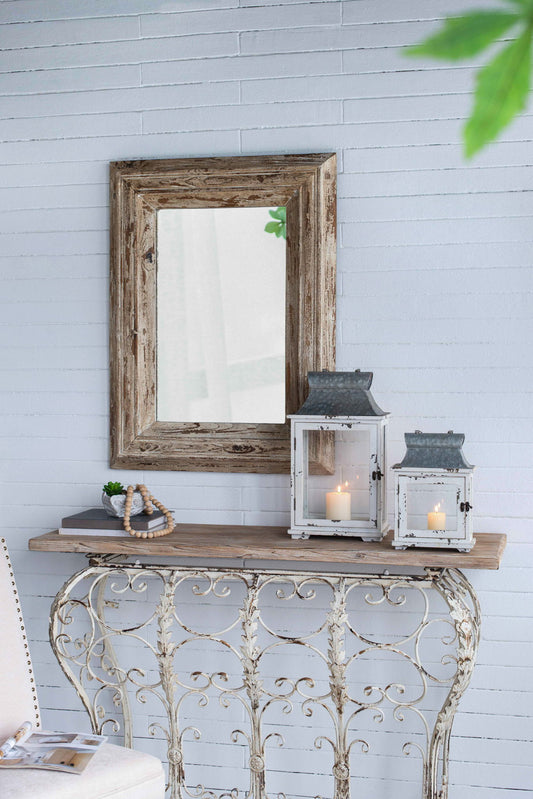 Wooden Candle Lantern Decorative, Hurricane Lantern Holder Decor For Indoor Outdoor, Home Garden - Ivory