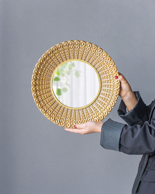 Beaded - Sunburst Mirror, Round Accent Wall Mirror For Living Room - Gold