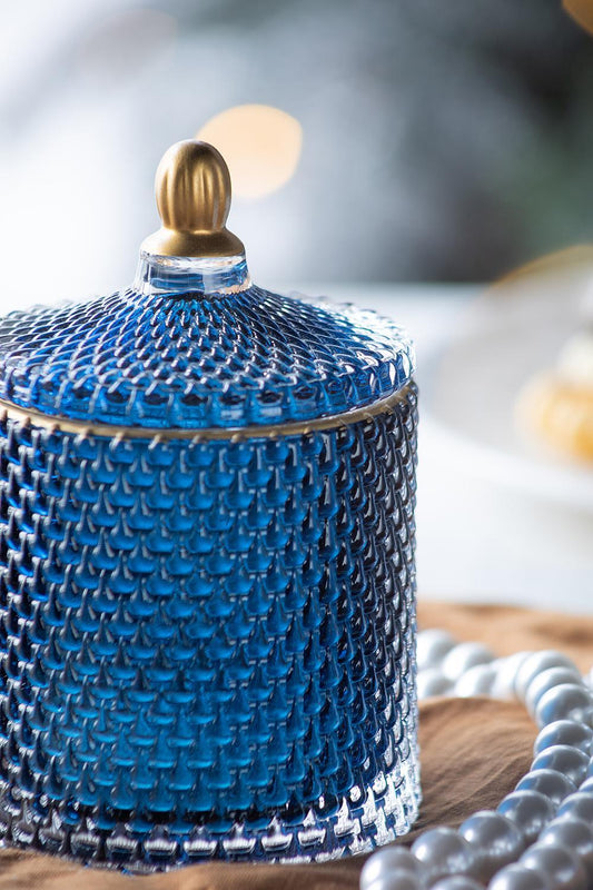 Glass Candy Jar With Lid, Christmas Candy Jar Containers (Set of 2) - Gold / Blue