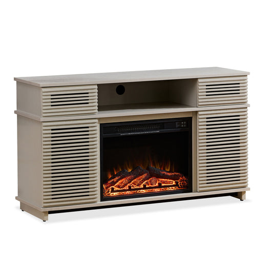 TV Cabinet, TV Unit With Fireplace, Have Heat And Flame Color Changes - White