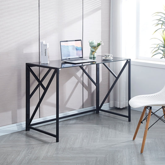 Tempered Clear Glass Computer Desk, Laptop Desk Transparent Glass Laptop Table, Small Study Desk