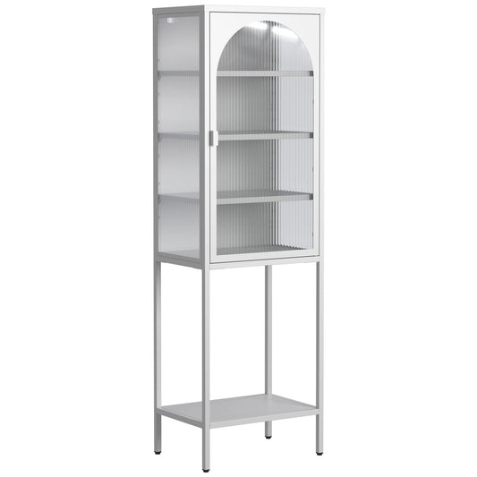 Metal Glass Door Display Storage Cabinet - 5 Tier Cube Bookshelf Storage Cabinet With 3 Adjustable Shelves For Kitchen, Dining Room, Living Room, Bathroom, Home Office