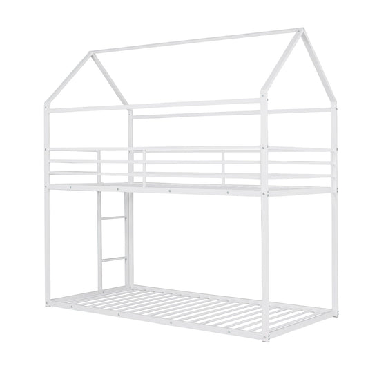 House Bunk Bed Metal Bed Frame Built-In Ladder, No Box Spring Needed