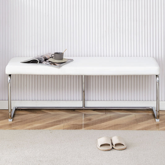 Modern White Shoe Changing Stool With Silver Metal Legs For Various Rooms