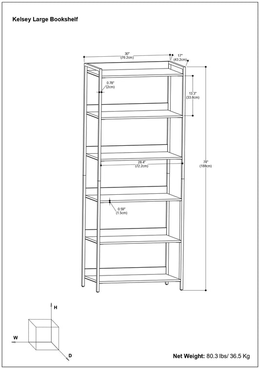 Mid - Century Design 5 Shelf Bookcase - Off White / Pecan