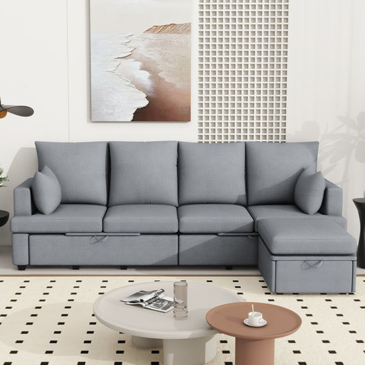 Contemporary Vertical Channel Tufted Velvet Sectional Sofa For Living Room Apartment With Ottoman And 4 Pillows