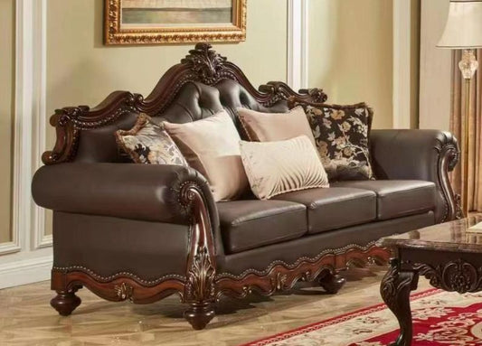 Elmbrook - Upholstered Rolled Arm Sofa Set With Intricate Wood