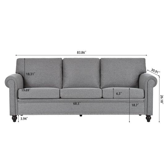3 Seat Sofa Living Room Linen Fabric Sofa