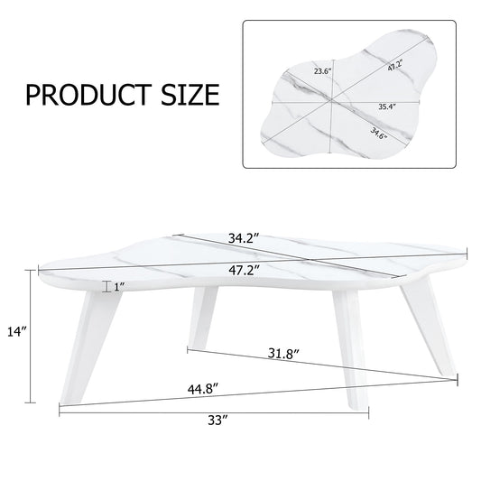 Modern Minimalist Imitation Marble Coffee Table With Solid Wood Legs And Cloud Shape Design - White