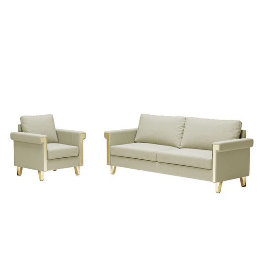 Luxury Velvet Sofa And Chair Set With Metal Accents