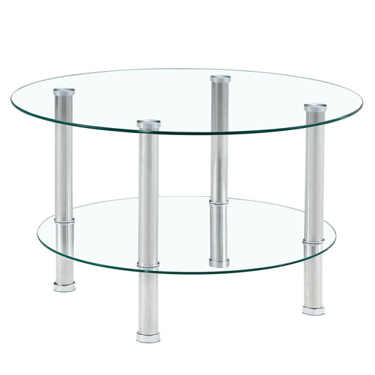 Contemporary Minimalist Double Layer Tempered Glass Coffee Table