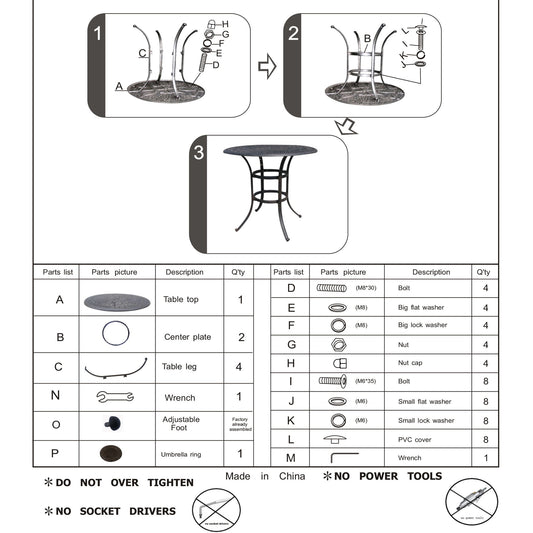 All-Weather And Durable 52" Round Cast Aluminum Round Dining Table With Umbrella Hole - Gray