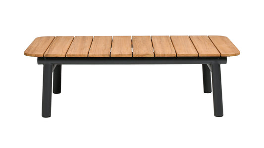 Zara - Dowel Frame Patio Coffee Table With Teak Top - Black / Natural / Teak