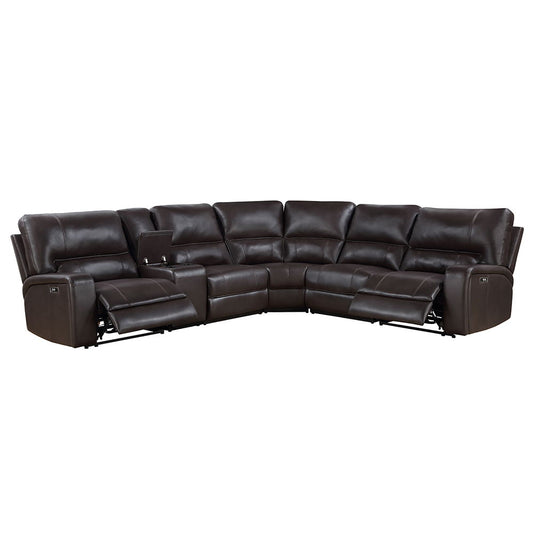Saul - Power Motion Sectional Sofa - Espresso Leather-Aire
