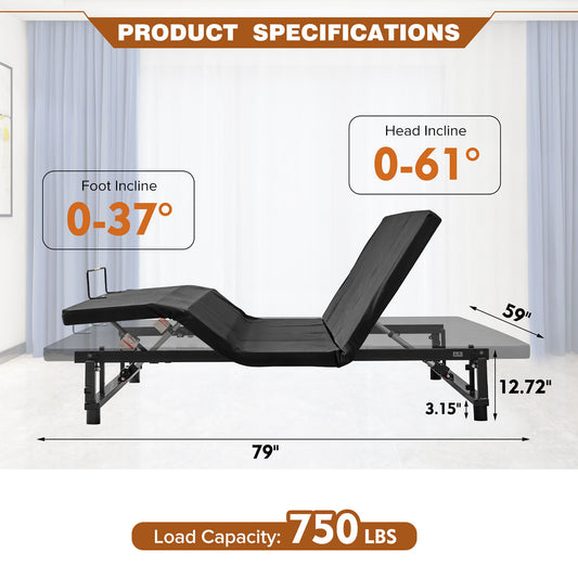 Adjustable Bed Base Frame With Head And Foot Incline Quiet Motor Zero Gravity