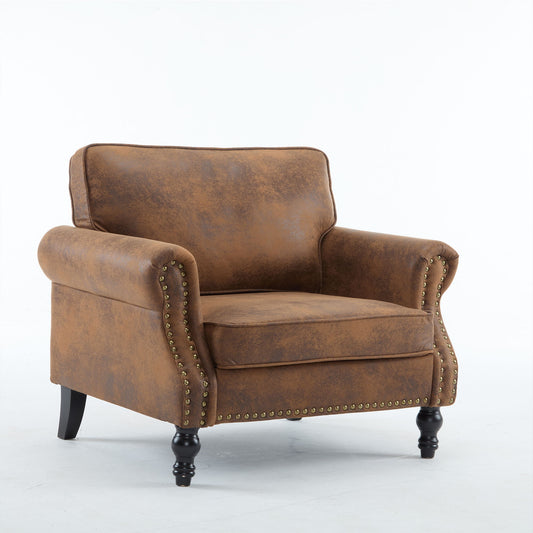 Rolled Arm Sofa With Nailhead Trim, 1 Seater Upholstered Couch With Wooden Legs