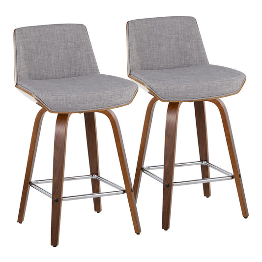 Fabrico - Mid-Century Modern Counter Stool (Set of 2) - Walnut / Blue
