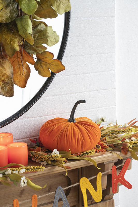 Velvet Weighted Pumpkin Ornament Decor For Holiday Harvest Festival Fall Festival & Thanksgiving (Set of 2) - Orange