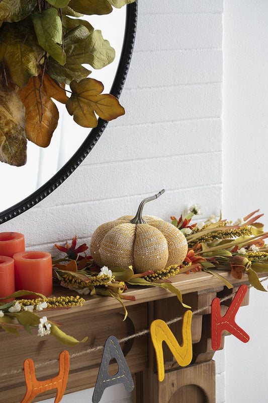 Knitted Weighted Pumpkin Ornament Decor For Holiday Harvest Festival Fall Festival & Thanksgiving (Set of 2) - Yellow