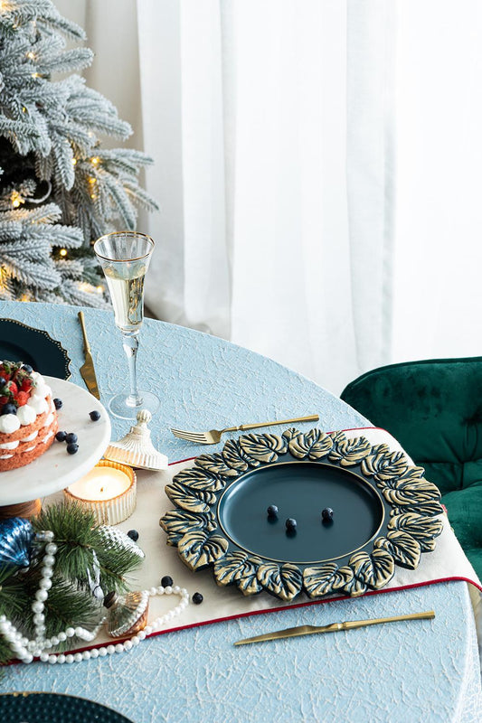 Plastic Charger Plate (Set of 8) - Blue / Gold