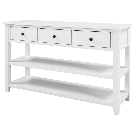 Narrow Console Table, Slim Sofa Table With Three Storage Drawers And Bottom Shelf