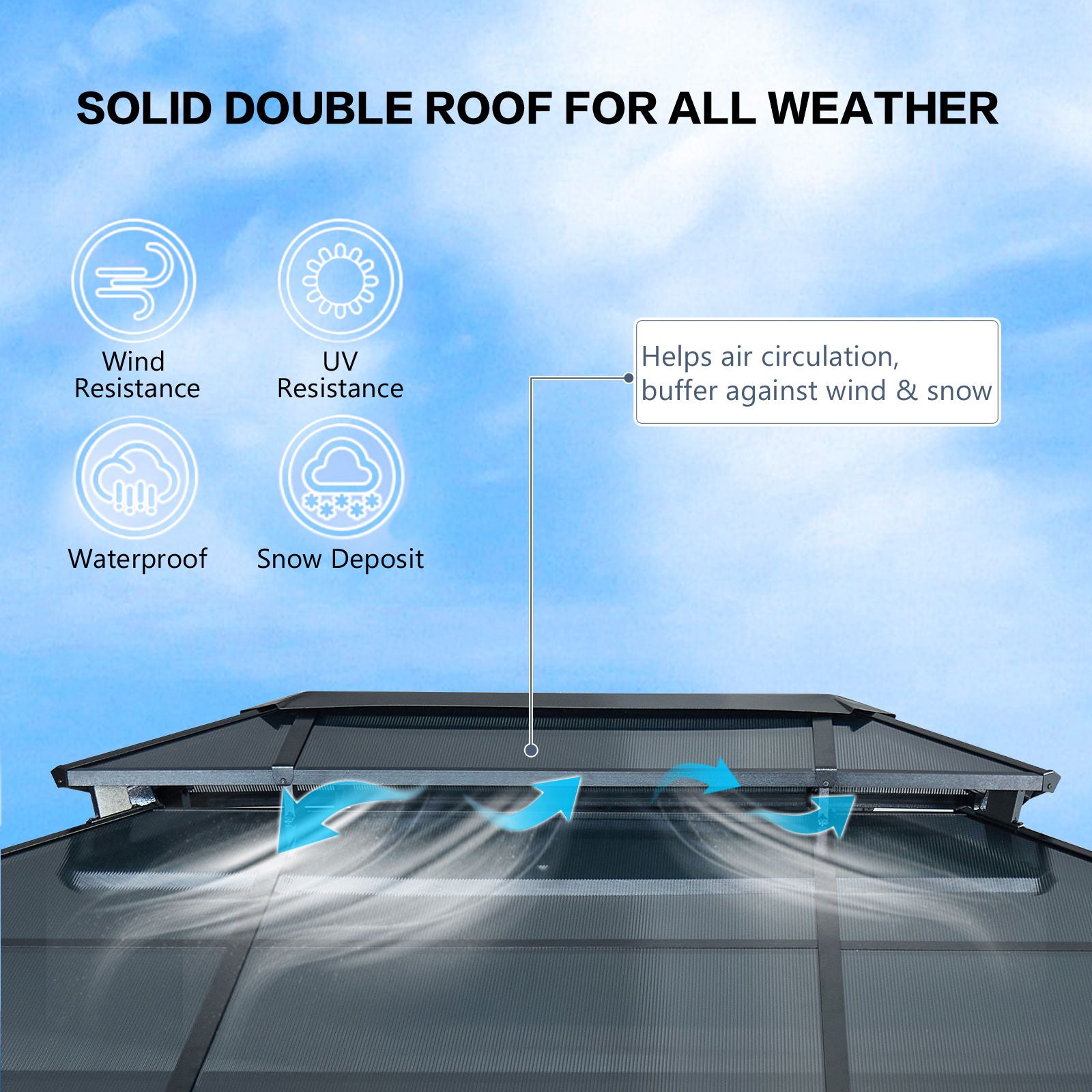 - Effective Ventilation: Double-tier roof design allows for comfortable airflow, resisting strong wind and heavy rains.