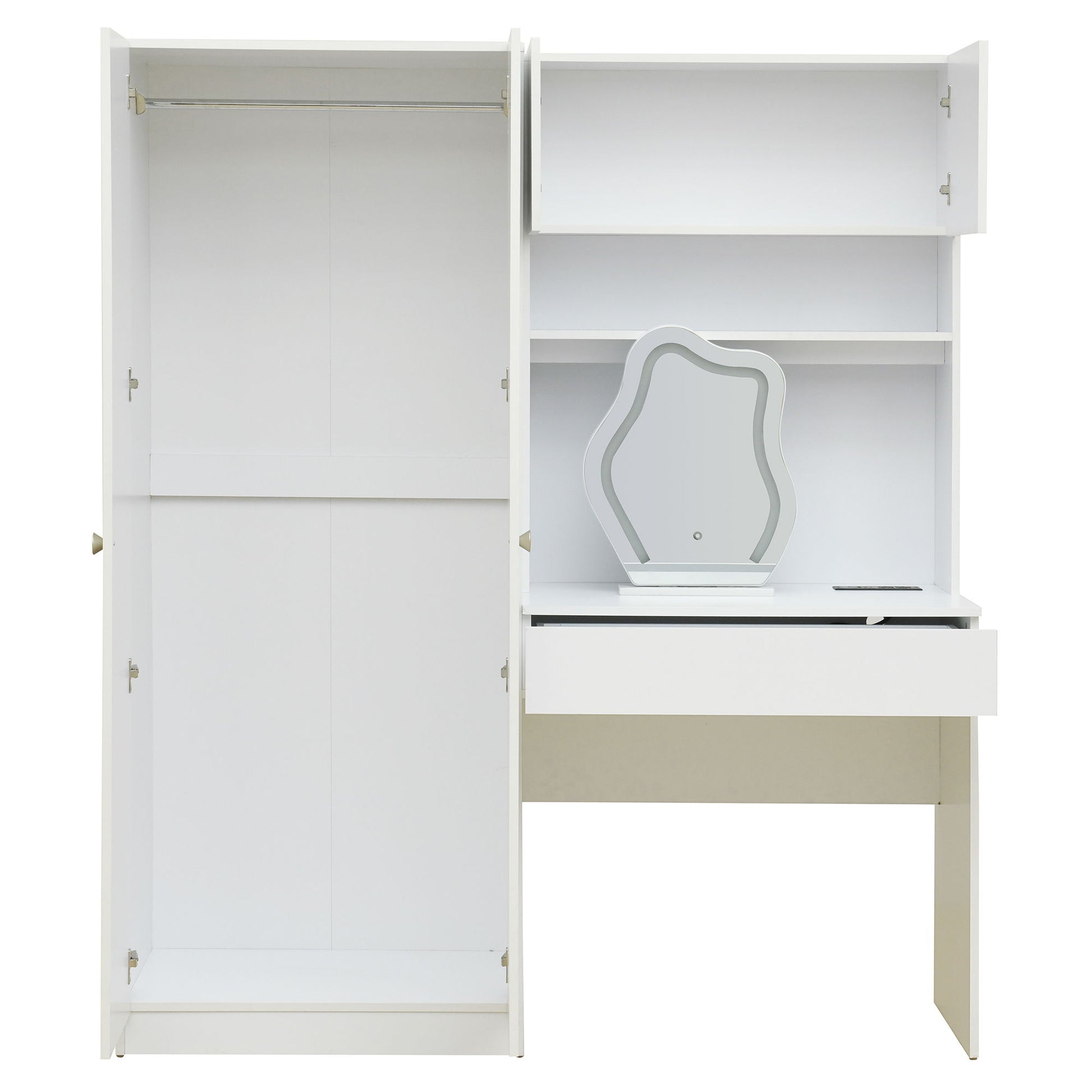 2 Door Storage Vanity Wardrobe For Bedroom With Makeup Mirror And Drawers - White