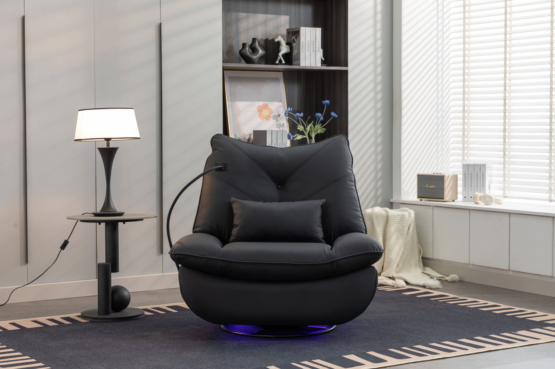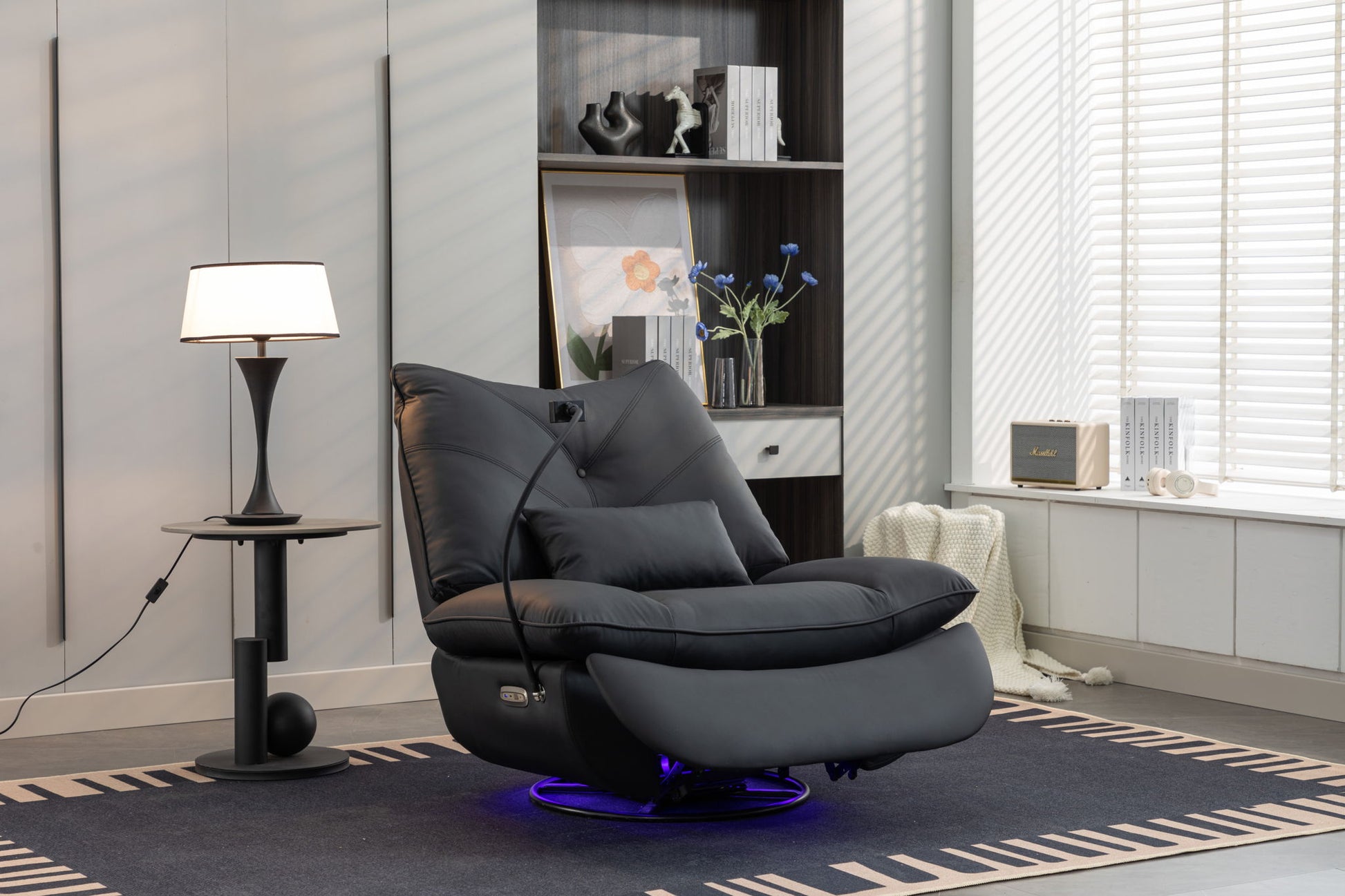 270 Swivel Glider Recliner Chair, Power Recliner Rocking Chair, USB Port Charge For Nursery Chair With Atmosphere Lamp For Living Room Bedroom Apartment - Black