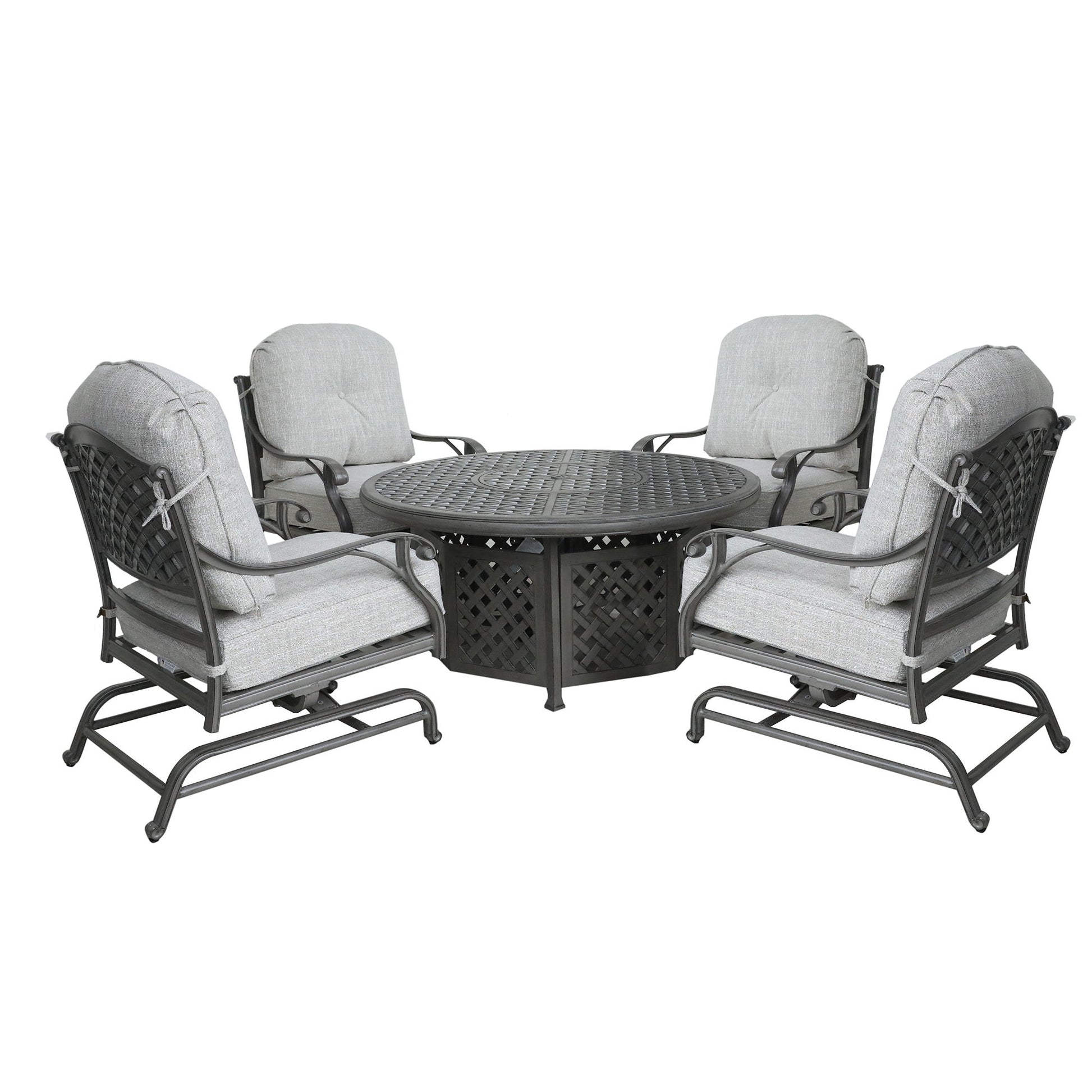 5 Piece Cast Aluminum Chat Fire Pit Set With Cushion - Gray Ash
