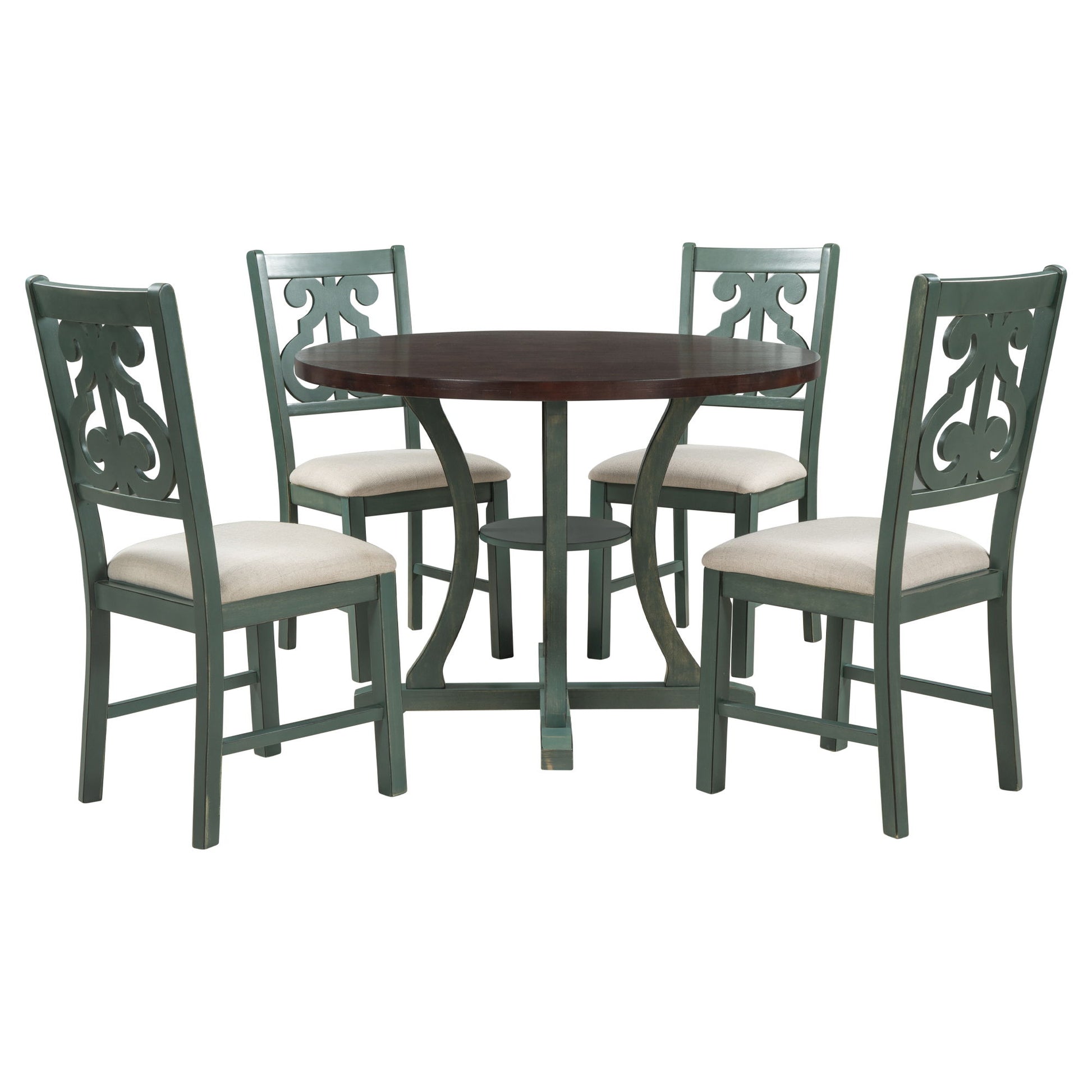 5 Piece Round Dining Table And Chair Set With Unique Legs And Hollow Chair Back