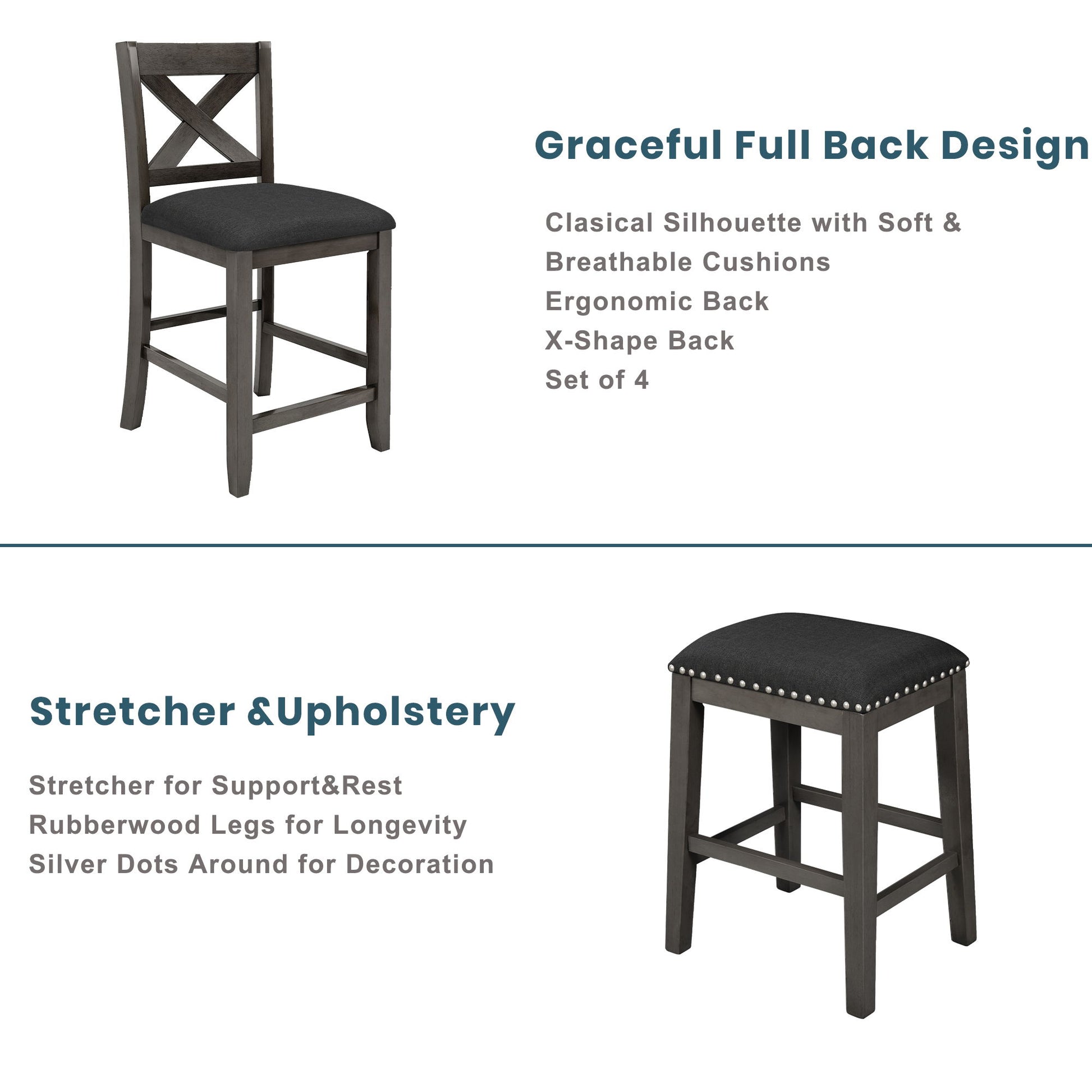 - Durable Construction: Made from solid rubber wood with MDF veneer, this set offers stability and durability. Its water and oil-resistant tabletop ensures easy maintenance.