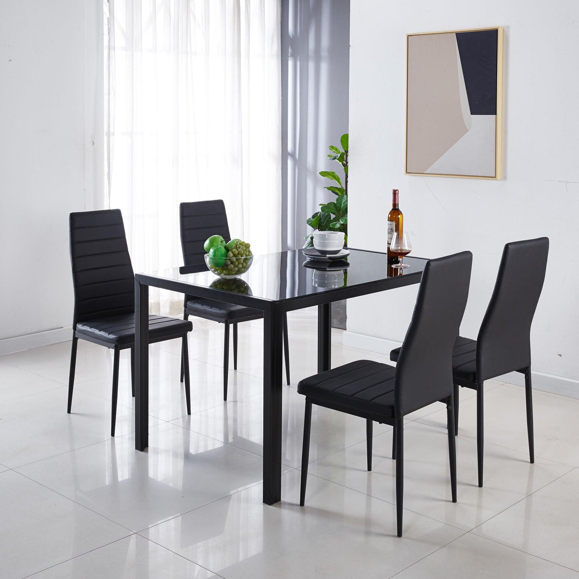 5 Pieces Dining Set, Table Metal Leg Mid-Century Dining Table For 4 - 6 People With Glass Table Top, Pedestal Dining Table, End Table Leisure Coffee Table - Black