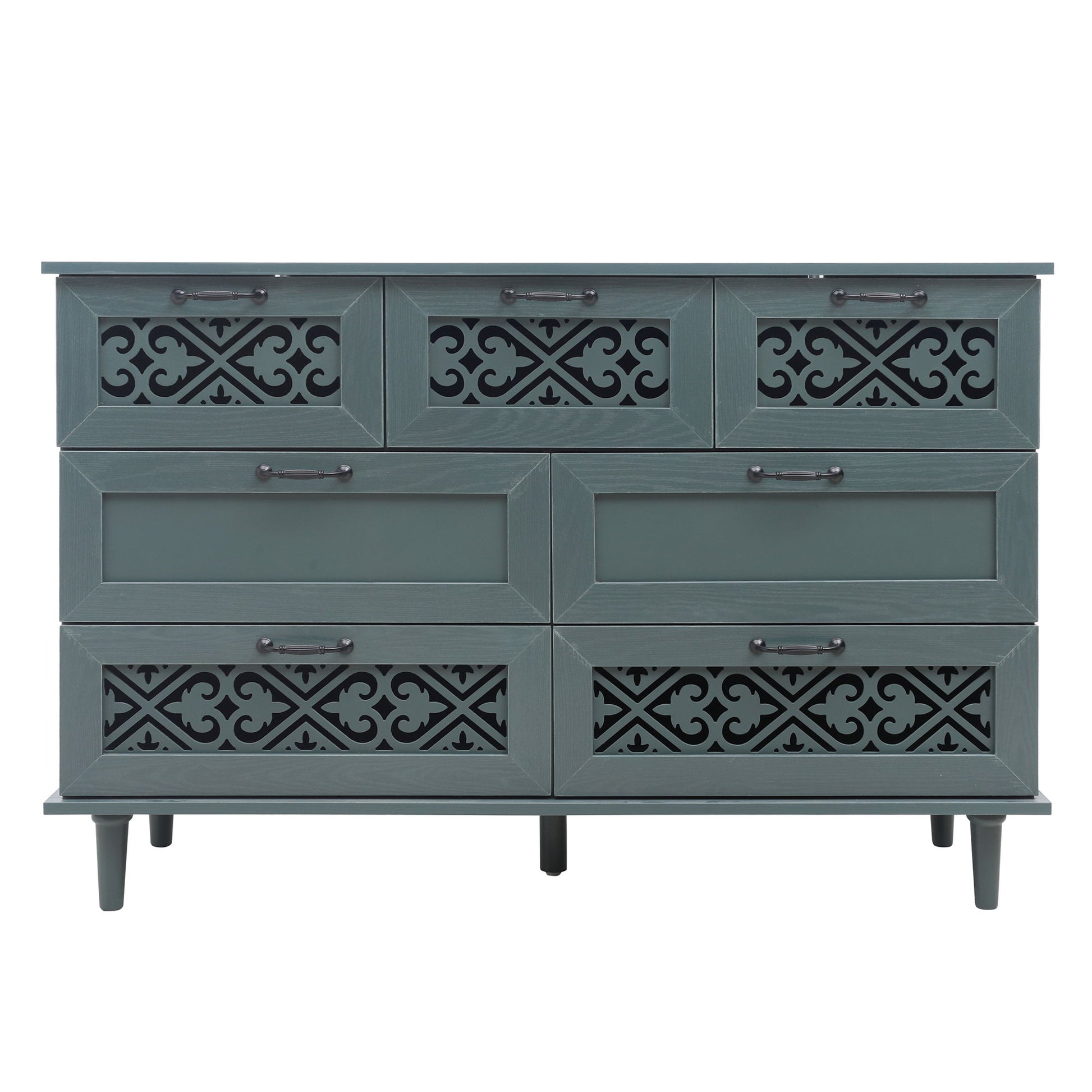 7 Drawer Cabinet, American Furniture, Suitable For Bedroom, Living Room, Study - Dark Green