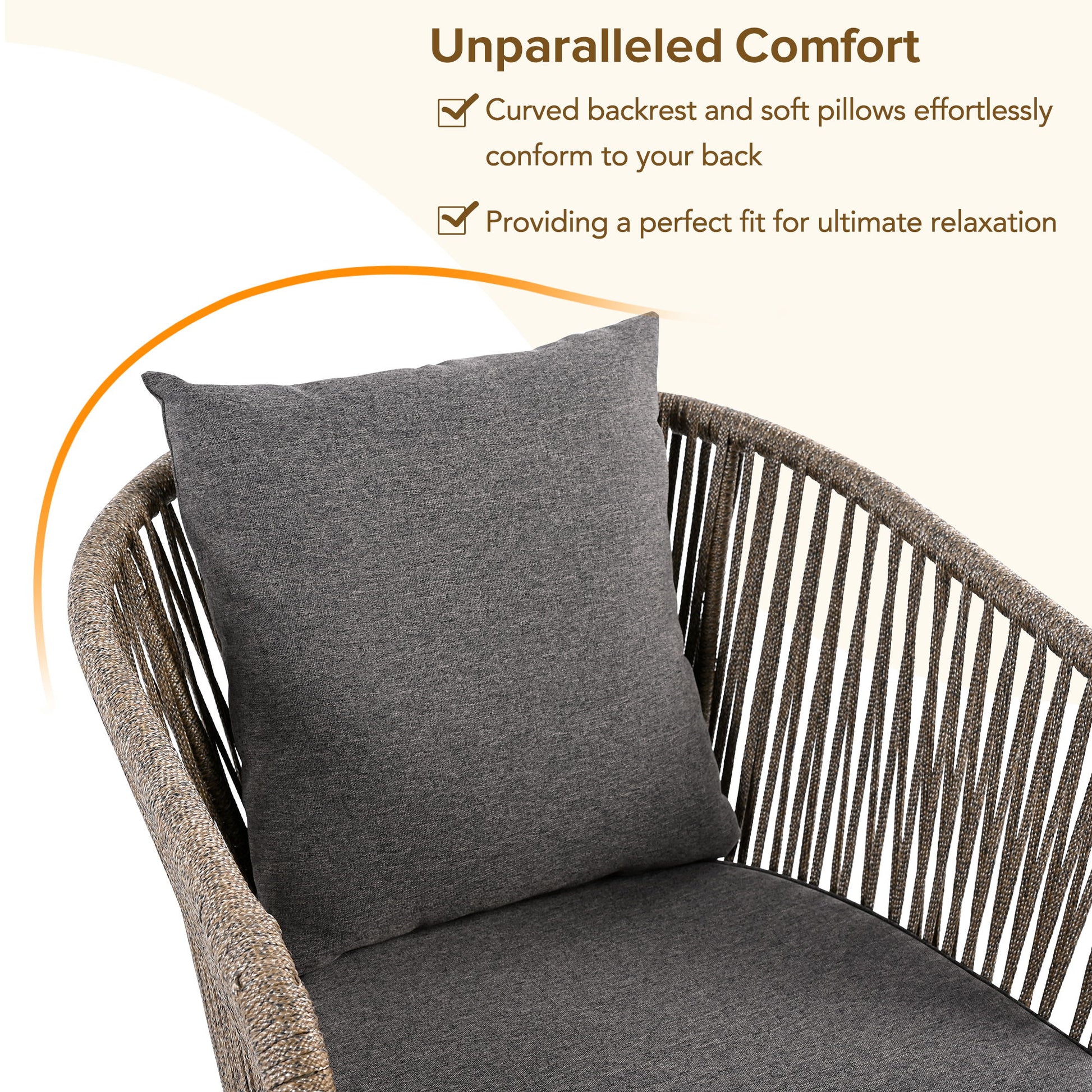 - Contemporary Design: The set's grey and brown rope weaving adds a modern touch, making it a stylish and functional addition to any outdoor setting.