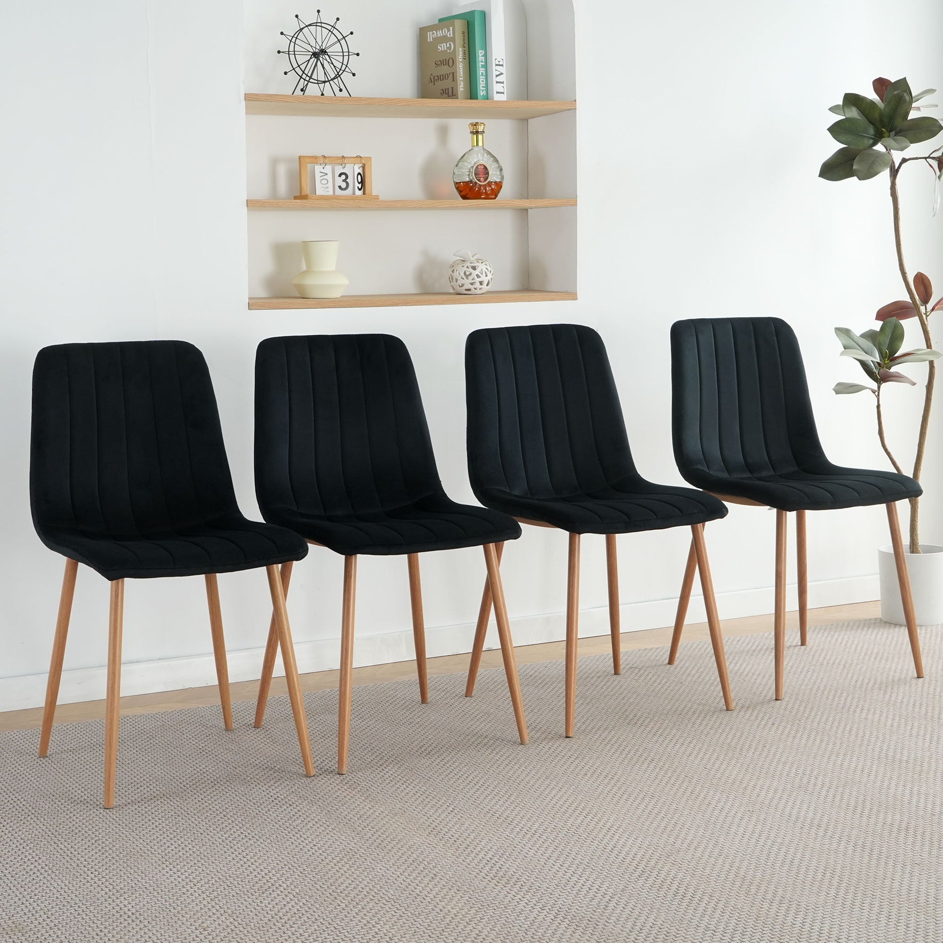 Modern Velvet Dining Chair With Backrest And Hot Transfer Metal Legs, Upholstered Side Chair (Set of 4) - Black