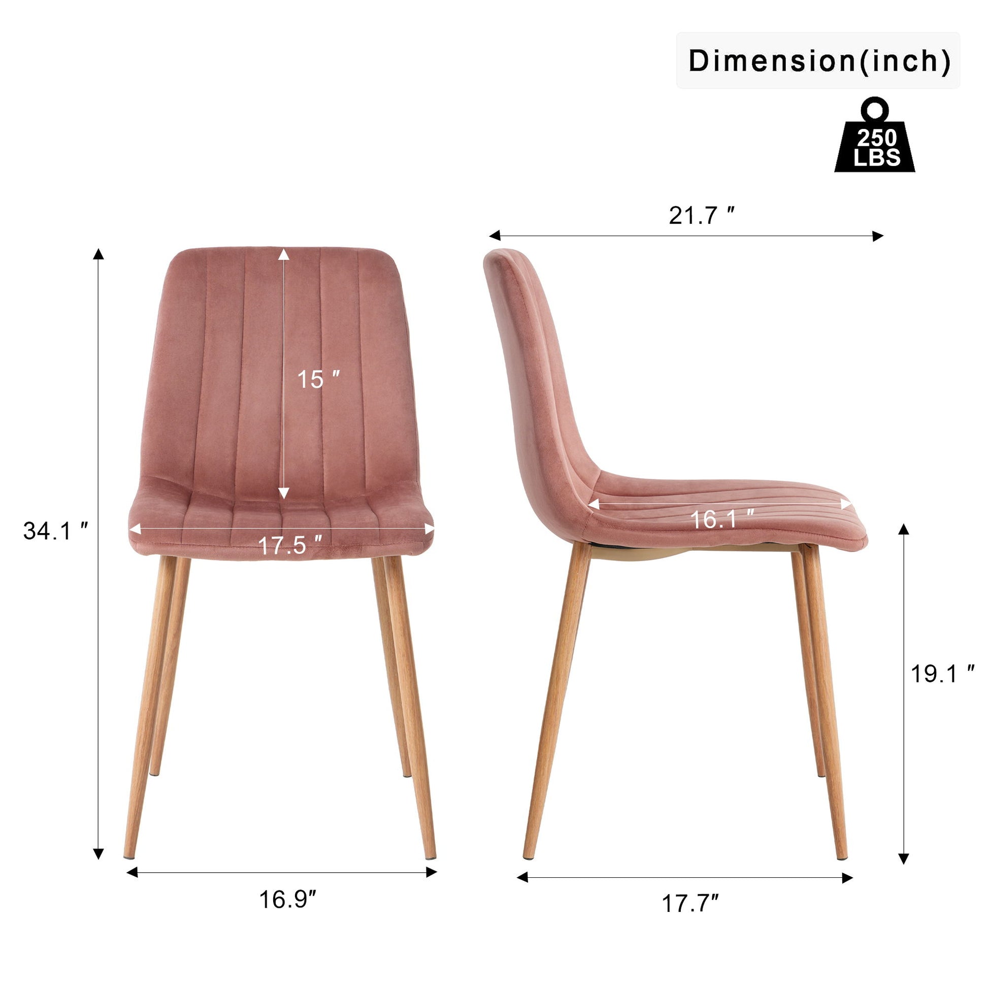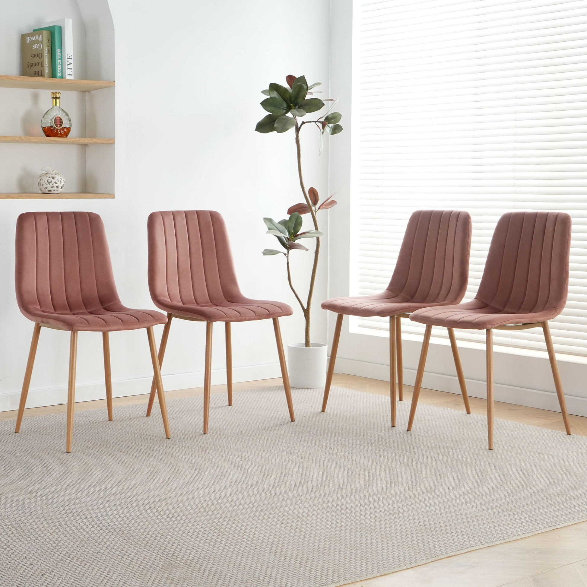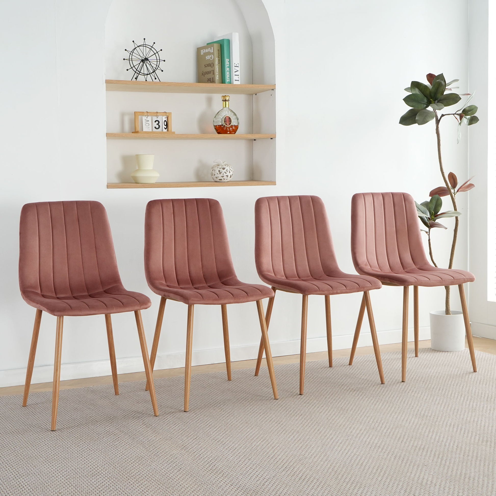 Modern Velvet Dining Chair (Set of 4) With Backrest And Metal Legs For Kitchen And Living Room - Pink