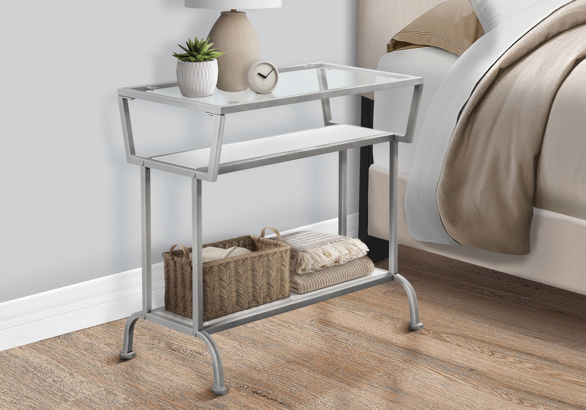 Accent Side Table, Narrow, Small, 2 Tier, Modern - White