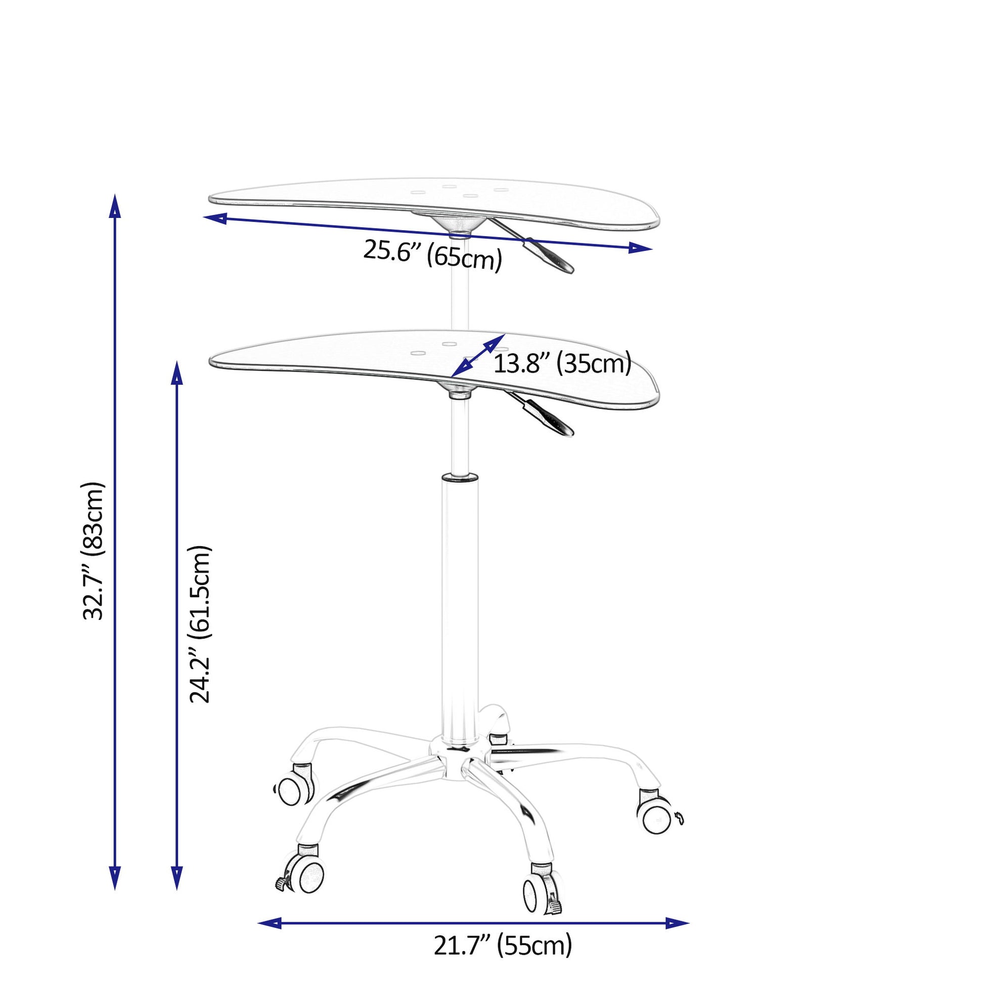 Adjustable Height Black Tempered Glass Table Desk Table With Lockable Wheels - Transparent / White