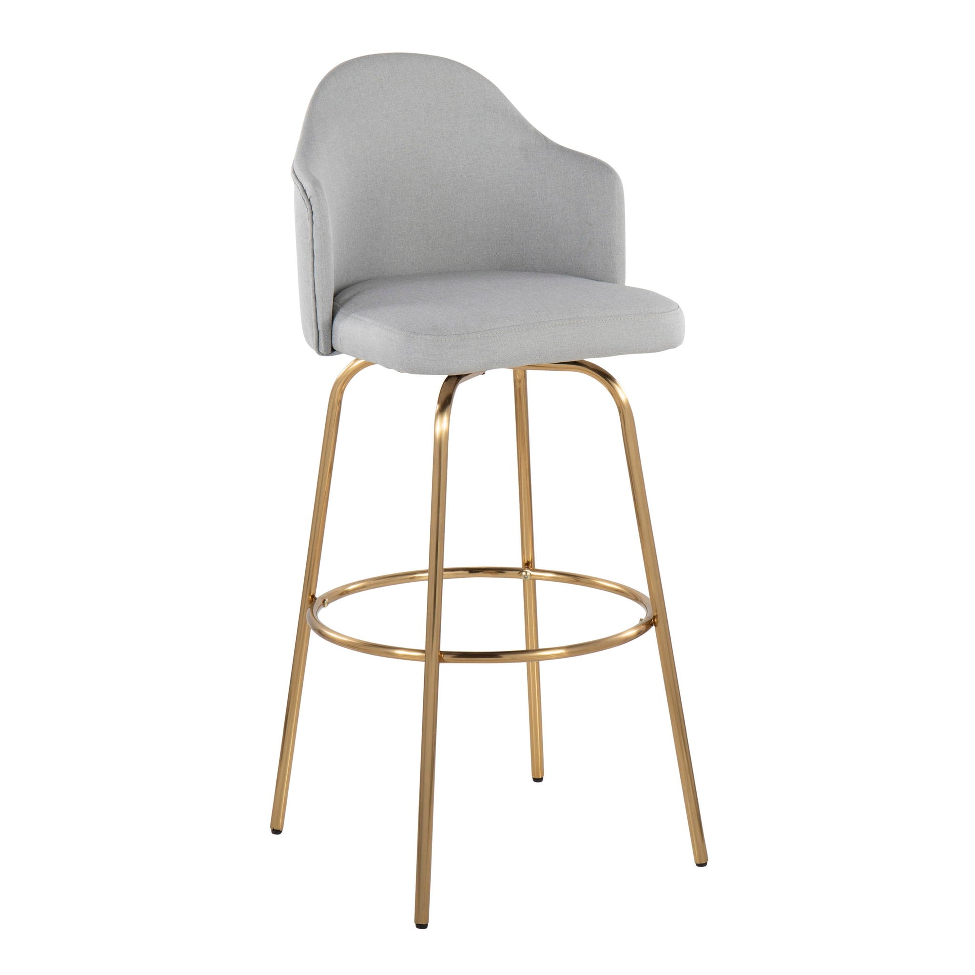 Ahoy - Contemporary Fixed Height Bar Stool Round Gold Footrest (Set of 2) - Light Gray / Gold