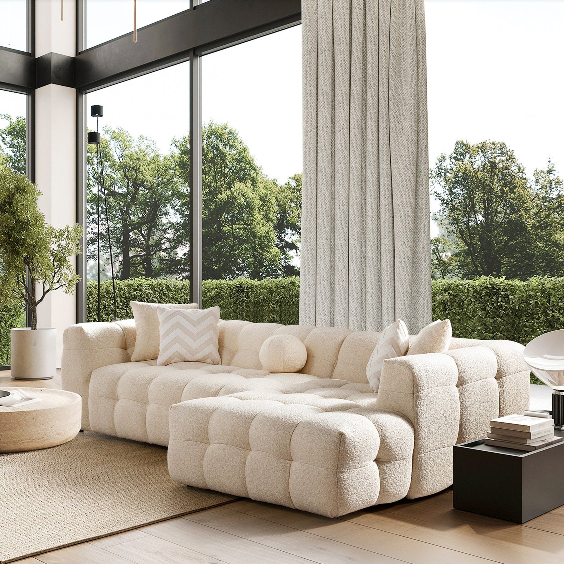 - Quality Material: Upholstered in premium boucle fabric in an elegant ivory color, offering a soft texture and sophisticated look.